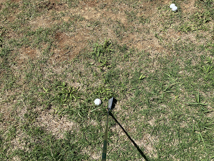 芝生は荒れ気味ですが、生えているところを探して打てば十分打てます。