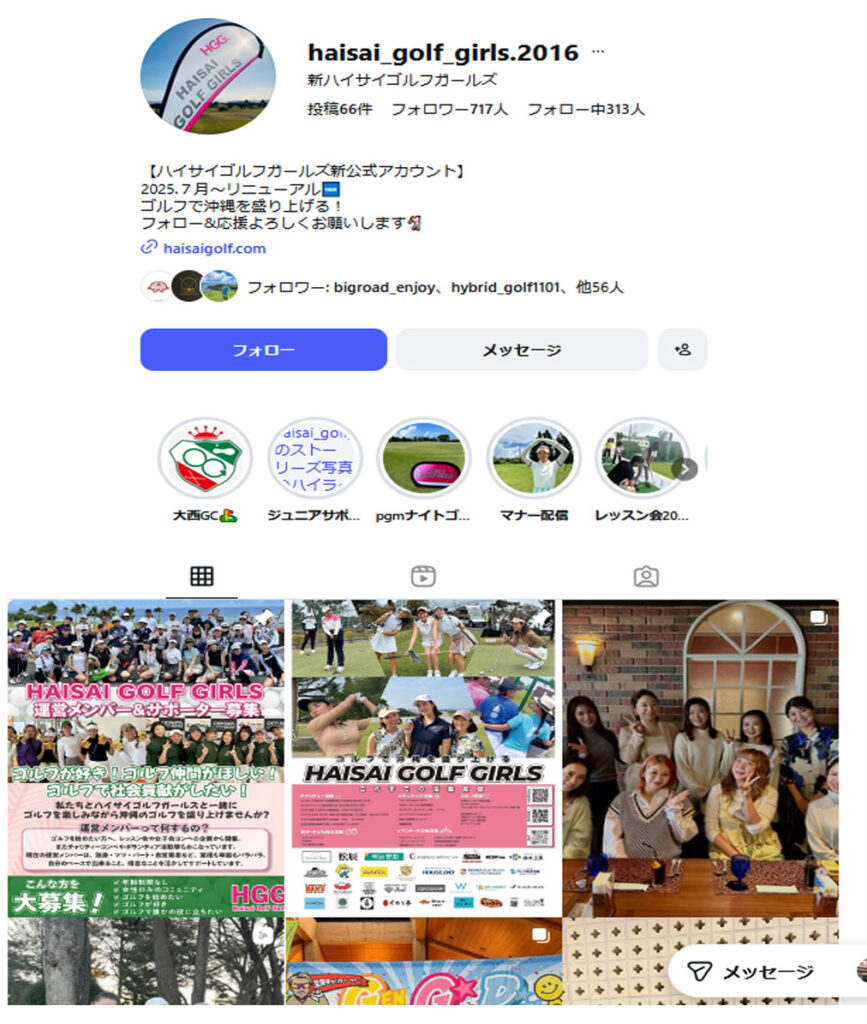 喜納)ハイサイゴルフガールズといえば、ゴルフ系インスタではかなり有名です。