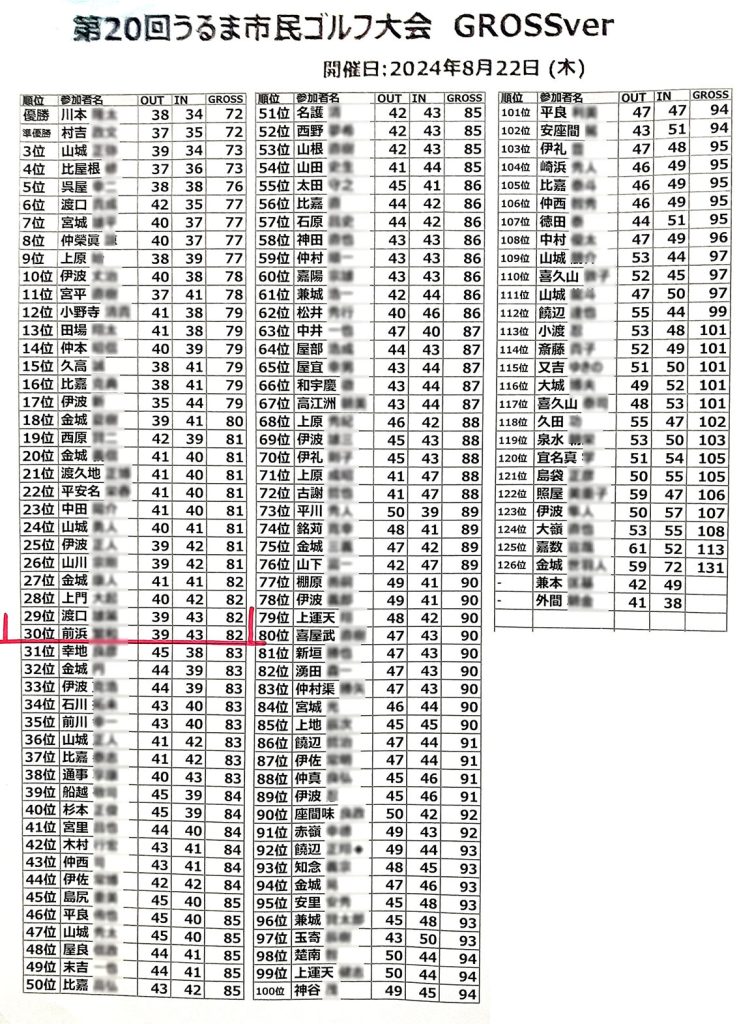 表彰式は行わず成績表は美原ゴルフレンジに張り出します。