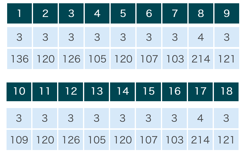 1番~9番を2周する
