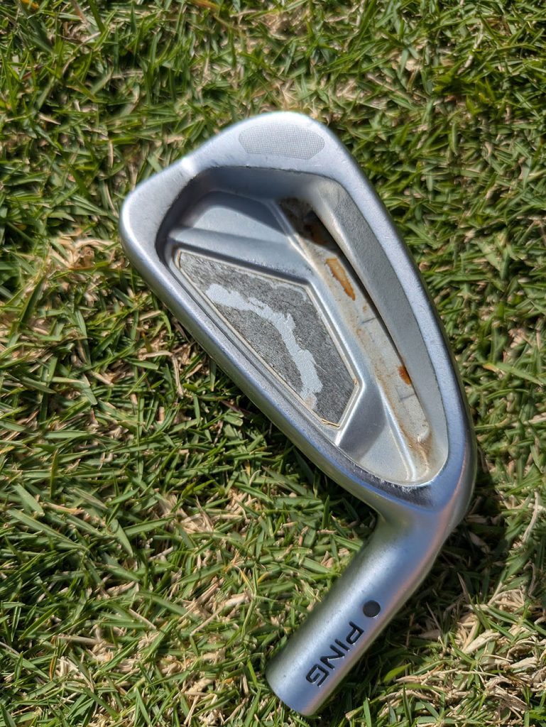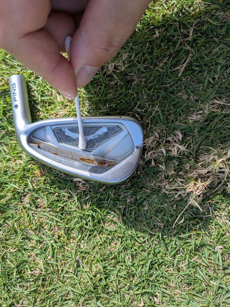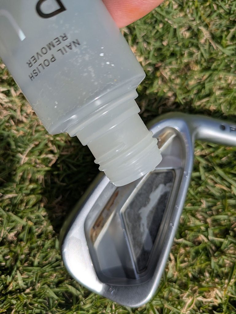 こちらのプレートの取れたi25アイアンのシール跡を綺麗にしていきます。