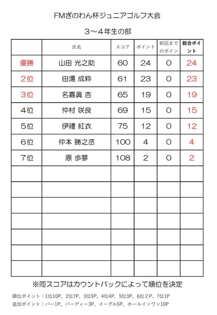 FMぎのわん杯ジュニアゴルフ大会⛳