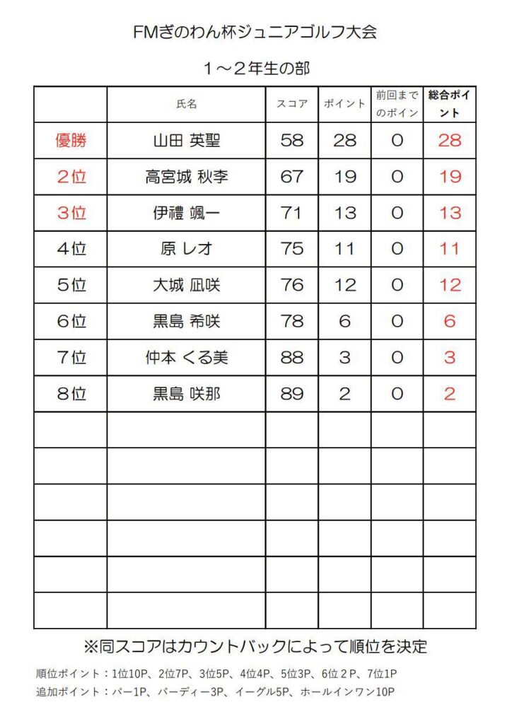 年間を通して行われるジュニアゴルファーのための大会⛳