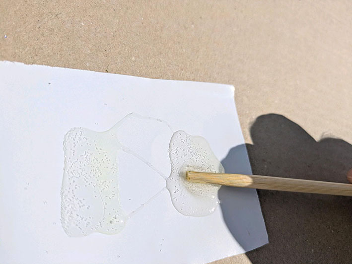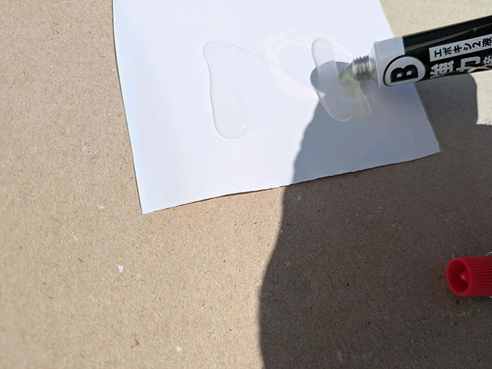 2液をたっぷり出して、棒でかき混ぜます。けっこう匂いしますね・・。