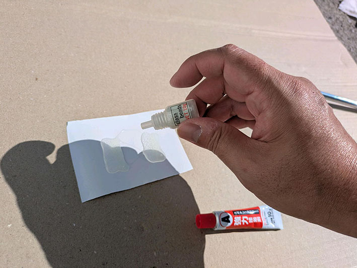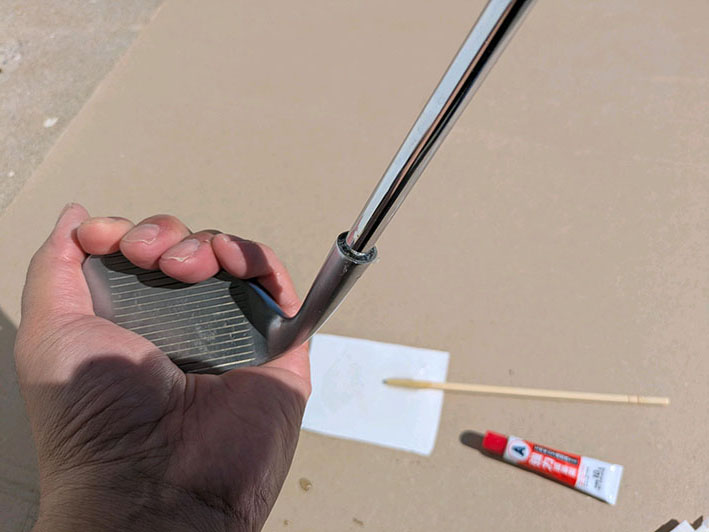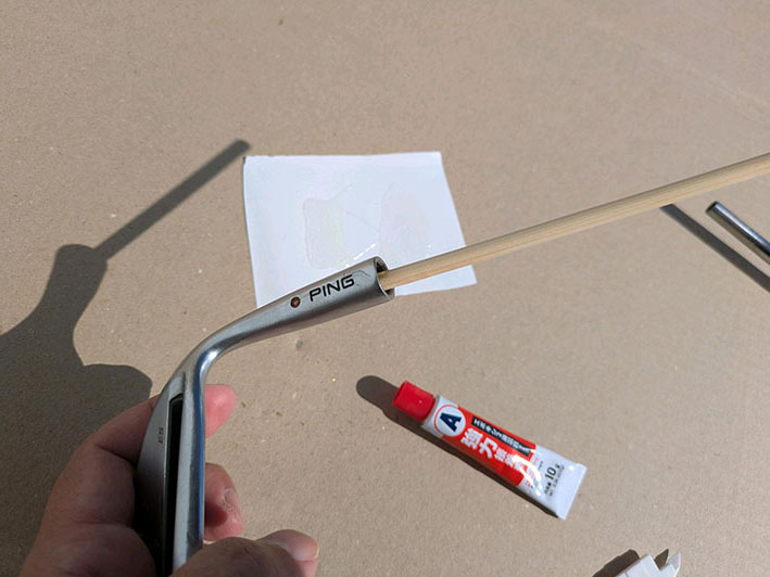 ヘッドの接着はアクリル系の2液混合をおすすめします。代表的なものに、セメダインのY611、Y610、Y600や、ホームセンターにも売っているメタルロックが信頼と、実績があるのでよいでしょう。