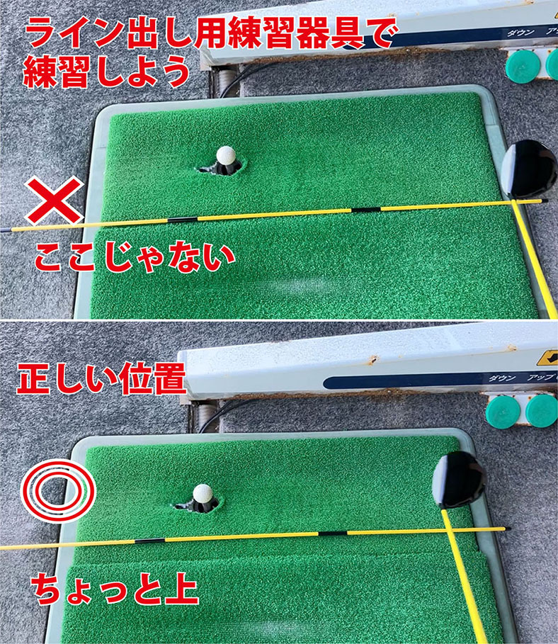 打ってるうちになぜか原因不明の不調に見舞われることはないだろうか?これは無意識にヘッドの通り道をラインに合わせてしまっているのが考えられます。